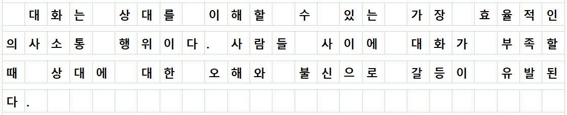 우리는 서로의 의견 차이로 갈등을 일으키는 경우가 있다. 이러한 갈등은 대화가 부족해서 생기는 경우가 많다. 대화는 서로의 관계를 유지하고 발전시키는 데 중요하다. 대화의 중요성과 방법에 대해 아래의 내용을 중심으로 자신의 생각을 쓰라.